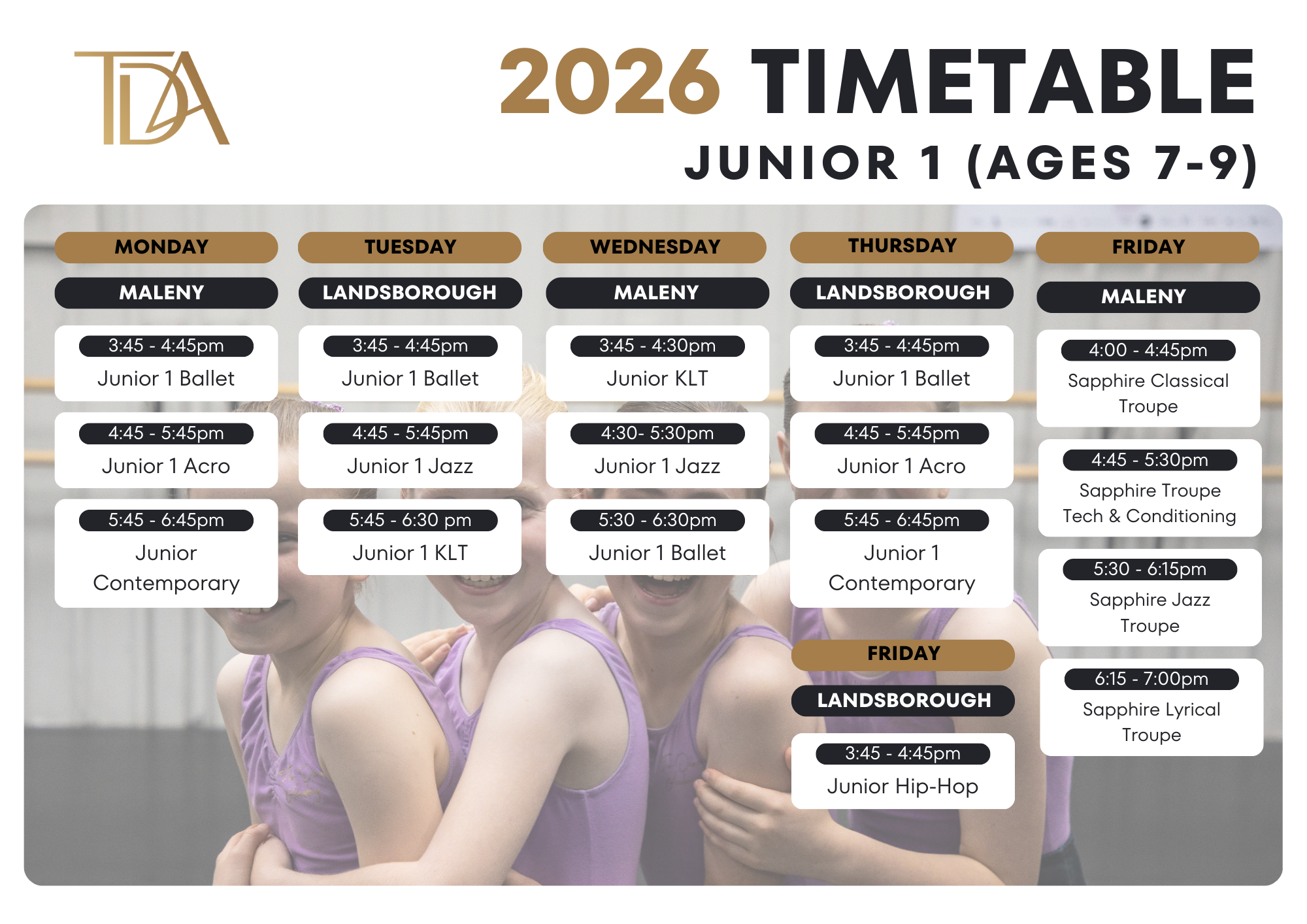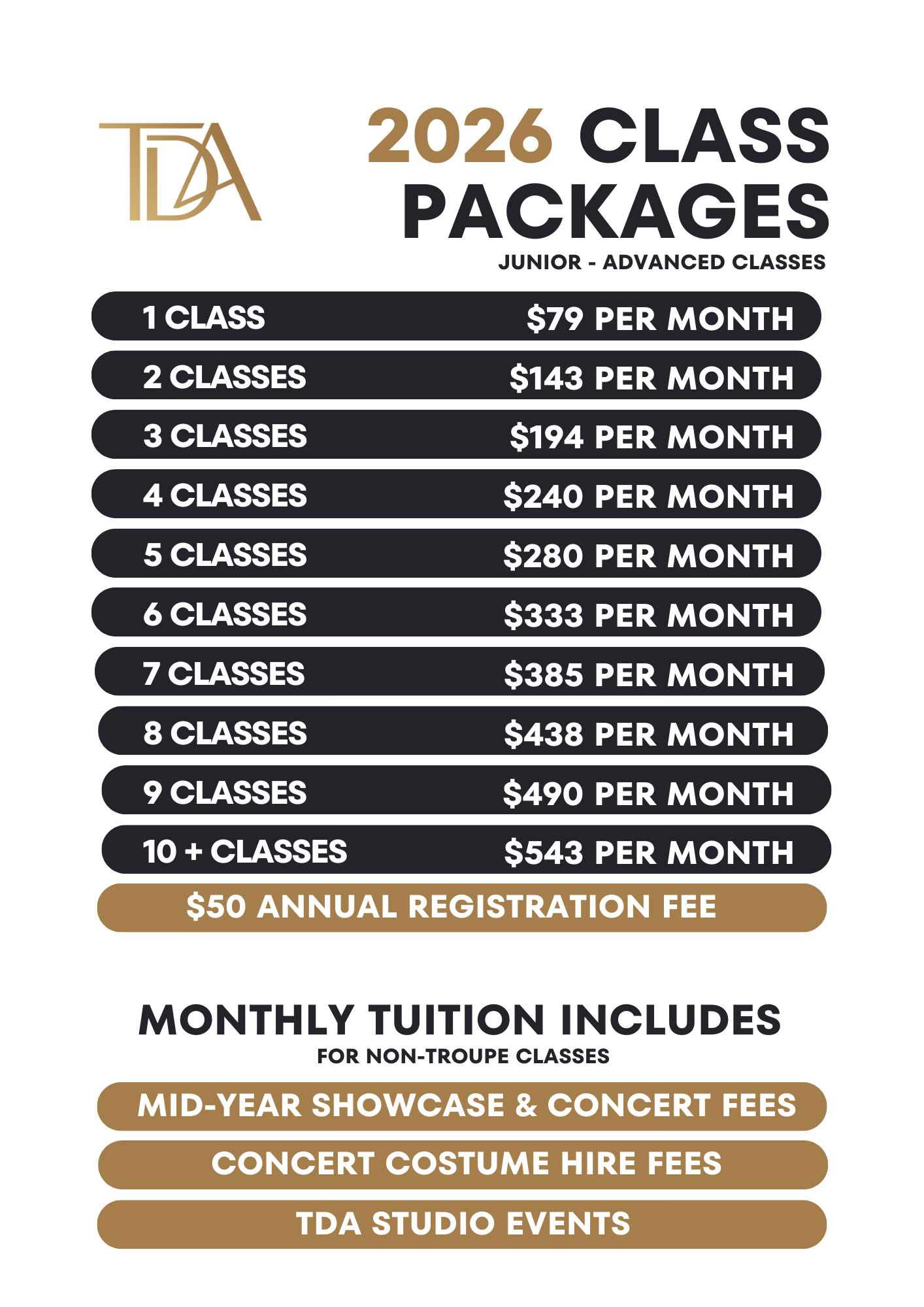 Our Junior Program offers the joy of movement while exploring the delicate balance between the technique and artistry of Ballet, Jazz, Acro, Contemporary and/or Hip Hop. Throughout these years your dancer will blossom in skills such as confidence and humility, kindness and respect, building friendships and they will develop an intrinsic love of movement and self-expression. Progression through the three levels of this program stimulates learning experiences that spark imagination and enthusiasm, while building the strength, suppleness and concentration required for dance training.
